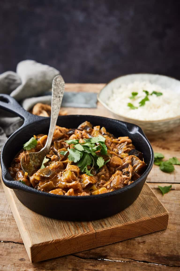 Aubergine curry met jackfruit