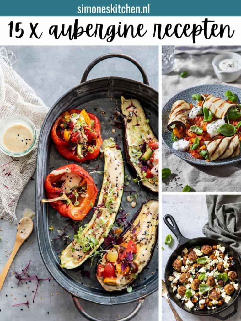Hieronder vind je 15 aubergine recepten om mee aan de slag te gaan. Een van mijn favoriete recepten is moussaka, maar ook een lekkere baba ganoush is makkelijk en perfect ook als je veel aubergines hebt.