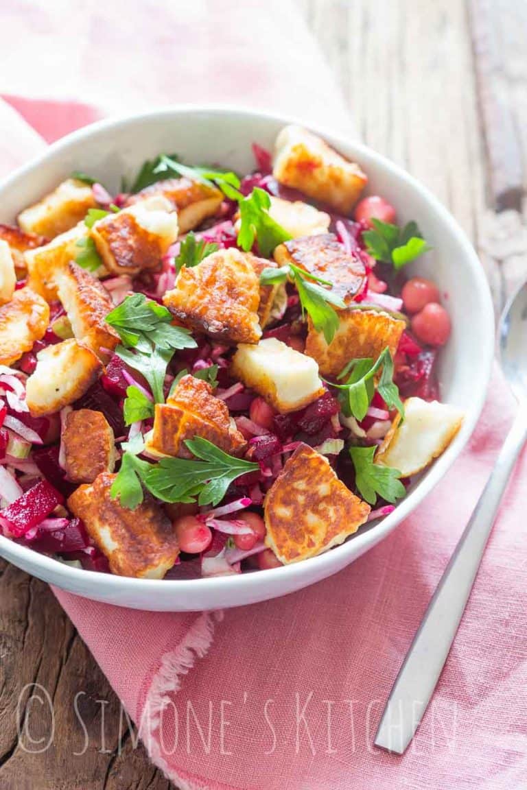 Bietjes en halloumi zijn twee dingen die uitstekend bij elkaar passen. Het zachte en zoete van de bietjes in combinatie met het knapperige van krokant gebakken halloumi is perfect en deze bietjessalade met halloumi is het perfecte voorbeeld van de ultieme salade.