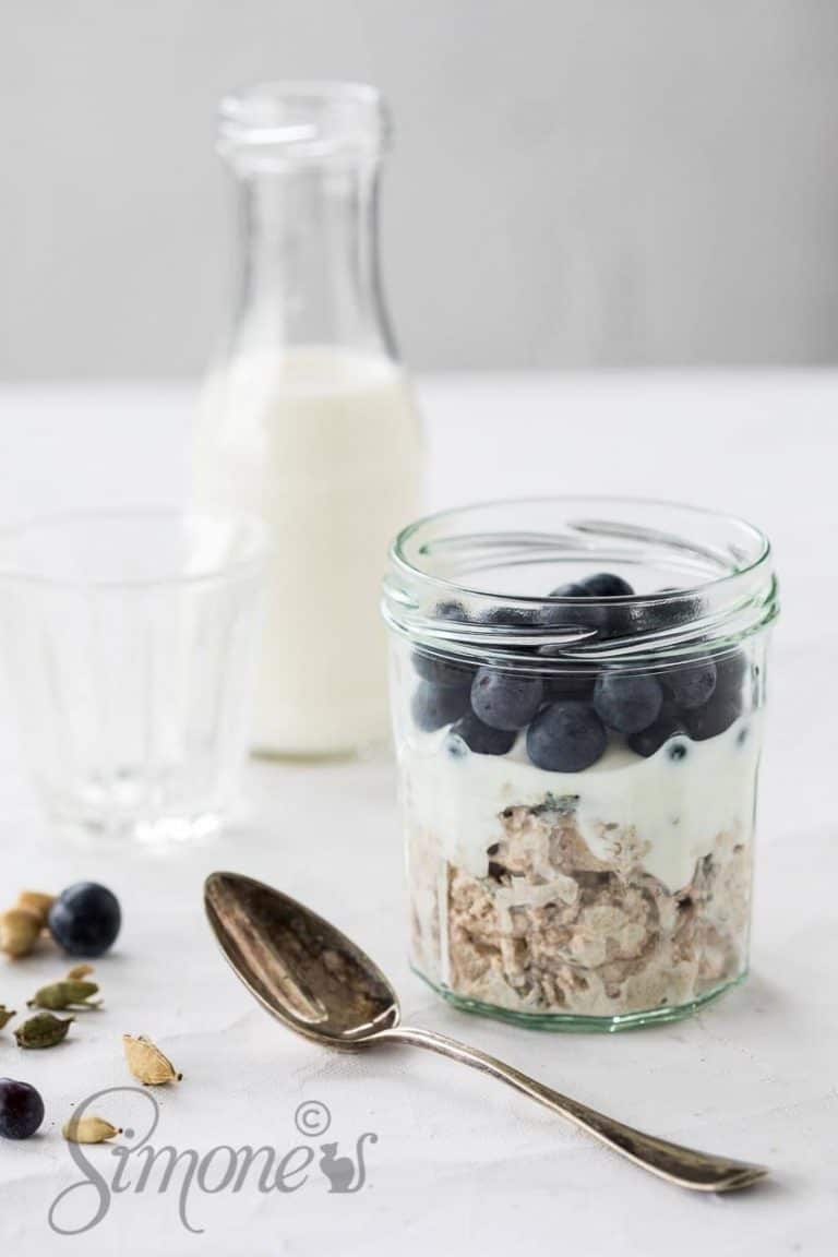Hoe dan ook, de vader van de overnight oats is dus de Bircher muesli. En nee dit is niet de traditionele variant, maar ik verving de appel door blauwe bessen en eet de muesli ’s morgens het liefst met wat verse yoghurt.