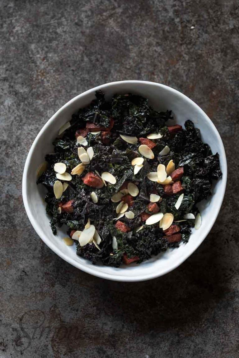 - Zet het vuur lager en laat het geheel goed stomen tot de boerenkool gaar is. Proef even of het al zout genoeg is. Zo niet dan voeg je peper en zout toe. De chorizo is vrij zout dus is niet altijd nodig.