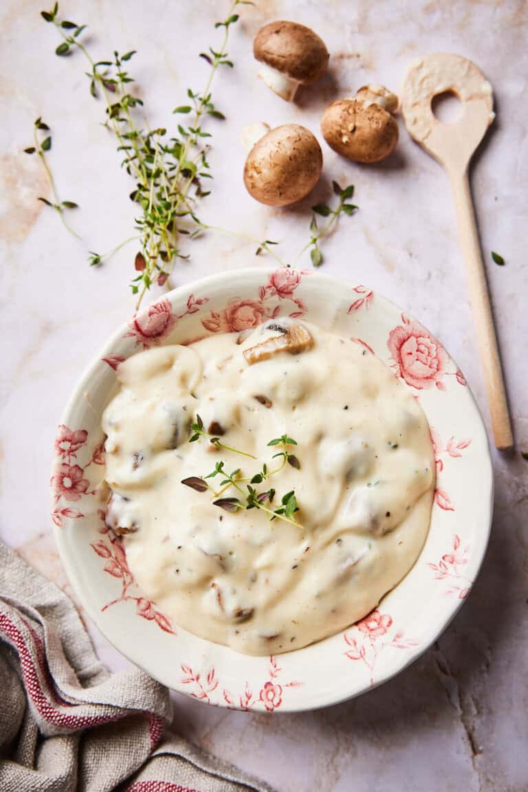 Ik heb voor deze champignonsaus gewoon volle melk gebruikt en dat is al heerlijk, maar je kunt ook champignonsaus maken met kookroom of slagroom. Het eindresultaat wordt daardoor wat voller en romiger.