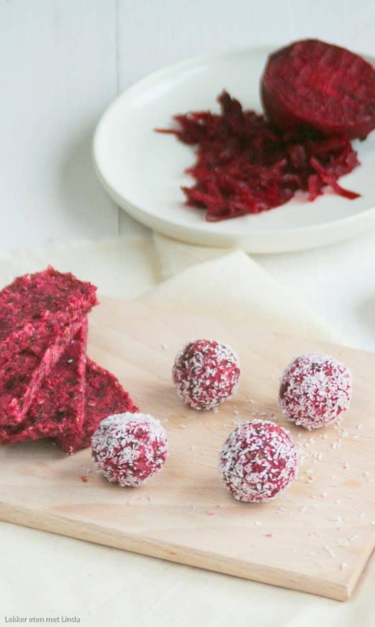 Deze lekkere zoete balletjes zijn bovendien vegan en een perfecte snack voor tussendoor. En door de rauwe biet heb je meteen wat groente naar binnen. Check ook eens deze dadelballetjes.