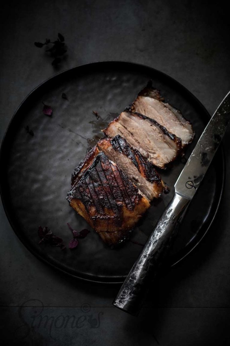 Het vlees kwam er mooi en stevig uit, maar moest nog wel even de grillpan in om dat krokante korstje erop te karamelliseren. Alles was helemaal goed gegaan, maar toch vond ik het vlees een beetje vlak van smaak. De volgende keer zet ik het buikspek toch eerst een nacht in een lekkere marinade.