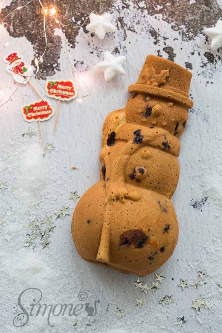 Goed om te weten is dat deze cakevorm niet hetzelfde is als een normale tulband qua inhoud. Dus heb je de sneeuwman ook dan kun je er twee uit het beslag halen. Of maak 1 tulband met blauwe bessen. Dat kan natuurlijk ook.