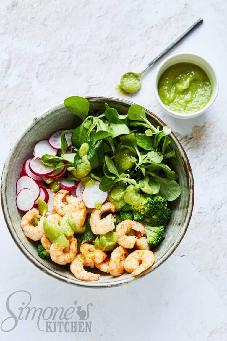 Voor de lunch ben ik dol op makkelijke salades. En die doe ik dan graag in een bowl maar dat hoeft natuurlijk helemaal niet. Dus als je deze garnalenbowl op een bord wilt leggen, be my guest.