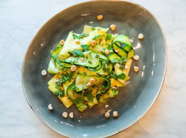 - Zet een pan op met ruim gezouten water. Snijd de lasagnevellen in de lengte doormidden en kook ze in een paar minuten beetgaar. Kook de laatste minuut de courgette mee met de pasta.