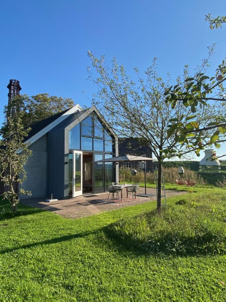 Het gemaal is een oud stoomgemaal uit 1884, dus heel bijzonder om te bezoeken. Maar over naar het vakantiehuis, want daar gaat dit blog over. Ik was er in december dus van mooi weer was geen sprake, maar het terras voor je huisje met openslaande deuren is geweldig. Je kijkt uit over het water en de velden en stiekem hoopte ik op sneeuw.