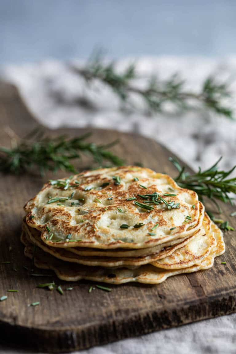 Dit lekkere glutenvrije flatbread met rozemarijn heeft ook wel iets weg van tortilla. Het zit er een beetje tussenin, maar het is hoe dan ook een heerlijk om ze te beleggen naar keuze!