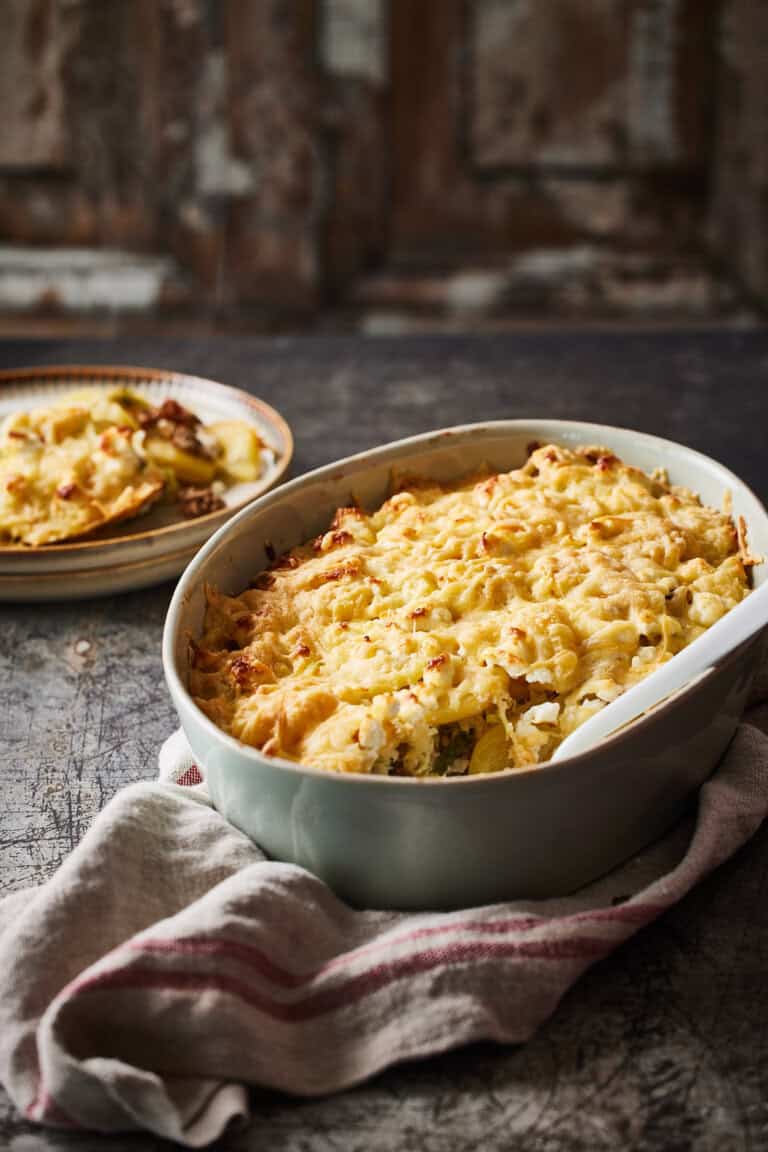 Een lekker stevige groene kool ovenschotel met feta en aardappels. Natuurlijk met een krokant kaaskorstje!