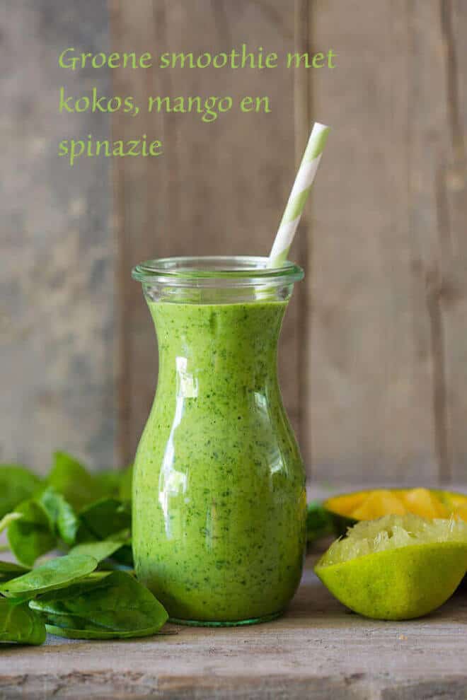 Groene smoothie met spinazie, kokos, mango en ananas