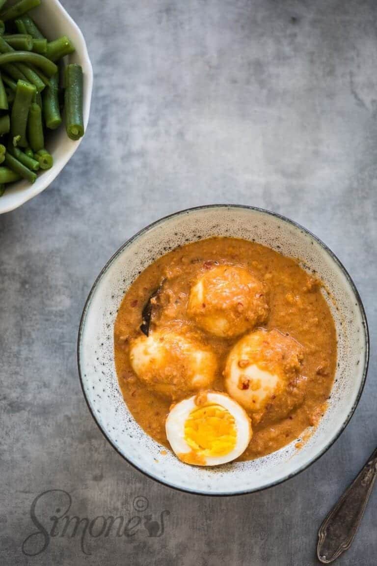 Neem nu deze telor petis oftewel Indische hete eieren. Super lekker en eens wat anders als je een keer vlees over wilt slaan. Het bevat wel garnalenpasta dus het is niet vegetarisch en een goede vega vervanger voor deze smaakmaker heb ik nog niet kunnen vinden. Iemand een suggestie daarvoor? Dan hoor ik het graag!