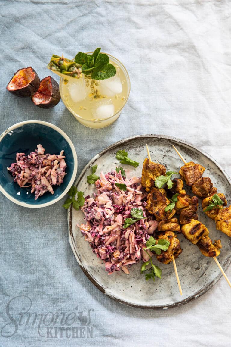Kipkebab spiezen met koolsla