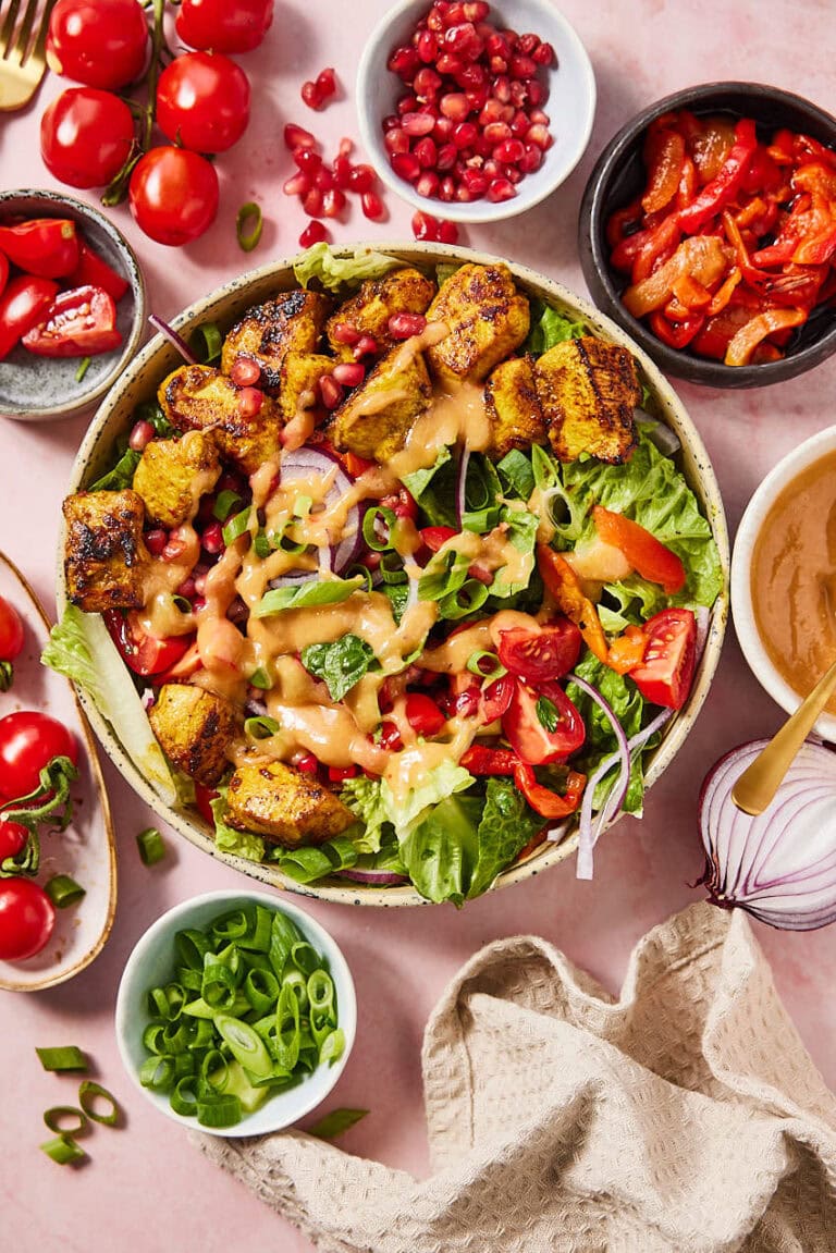 Ben je dol op kipsaté maar wil je het wat gezonder maken met meer groente? Dan heb ik het recept voor je. Dit heerlijke en makkelijke kipsaté salade recept is zo lekker! Het is makkelijk te maken en de perfecte snelle doordeweekse maaltijd.