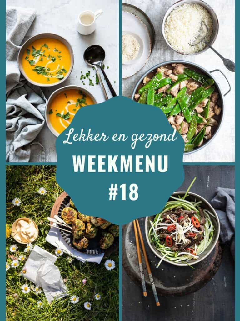 Goedenmorgen! Ik word vandaag wakker met het zonnetje. Toch een stuk beter dan die plensregen van de afgelopen dagen. Nu maar hopen dat het zo blijft. Maar wat het weer ook is of gaat worden; het weekmenu staat weer voor je klaar!