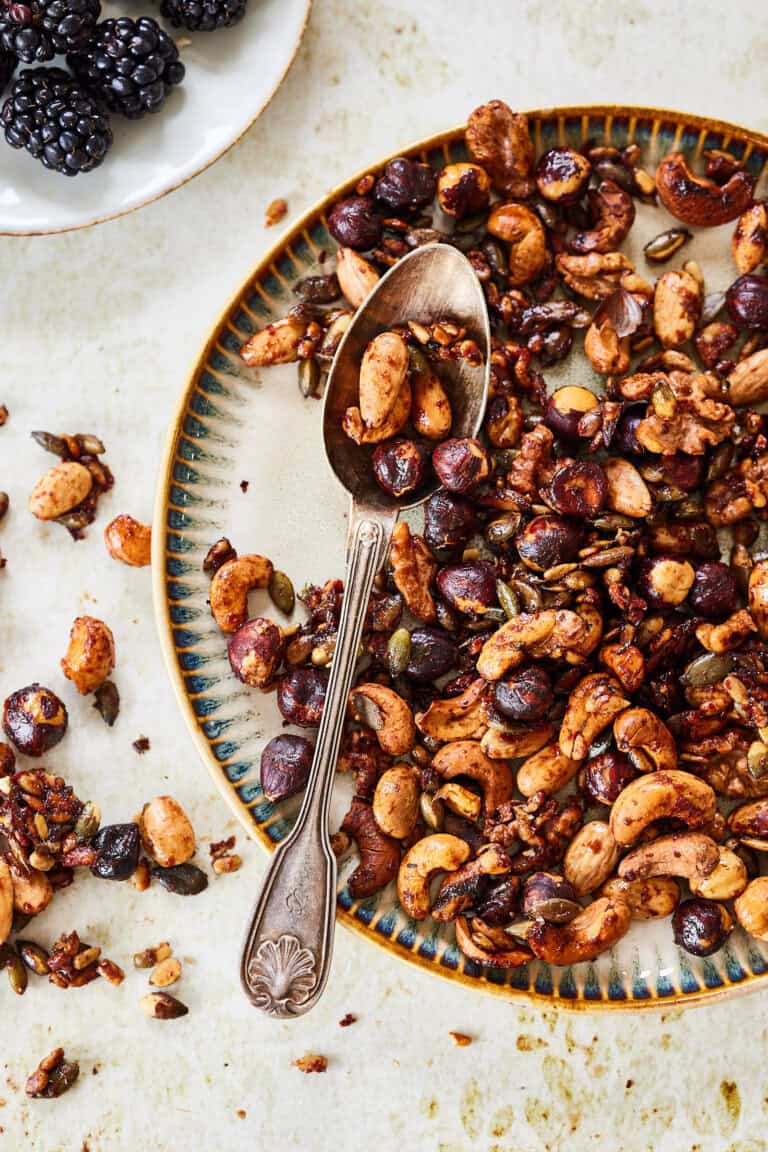 Deze trailmix kun je natuurlijk ook gewoon als granola gebruiken. Of probeer eens een gewone cruesli te maken. Of een gewone granola of een speculaas granola. Of wil je een noten granola maken zonder olie?