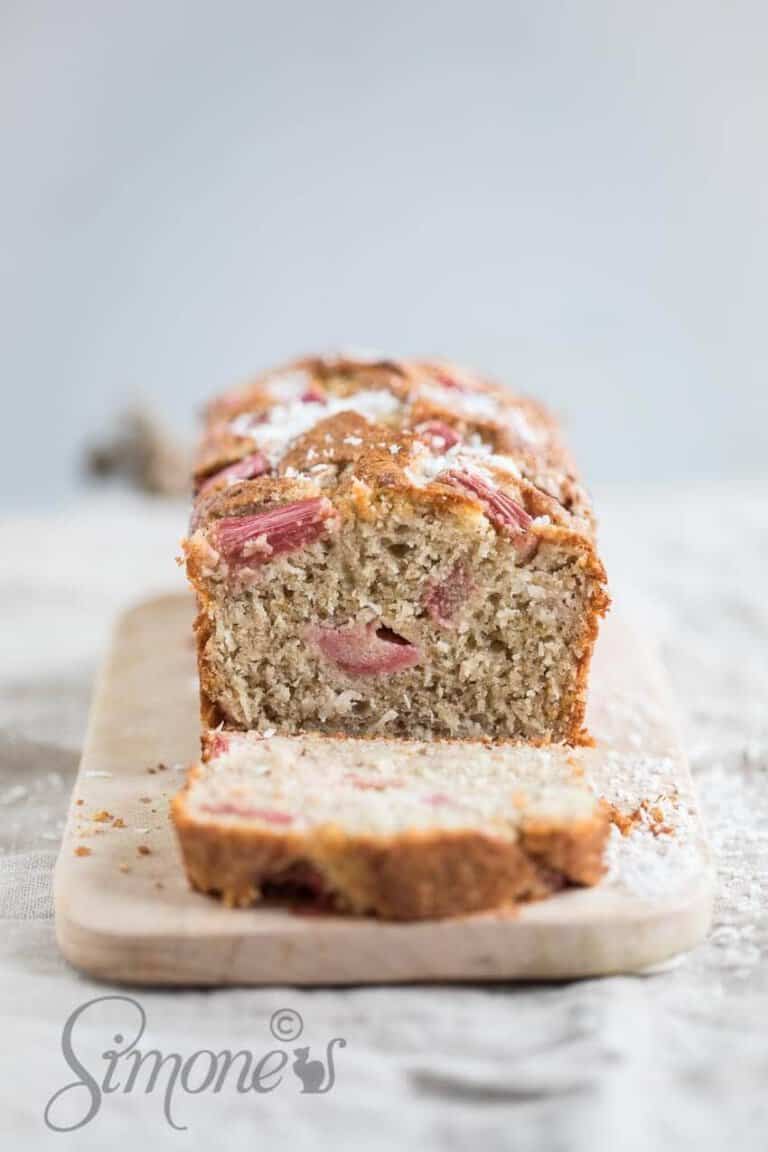 Een heerlijke glutenvrije rabarbercake met kokos. De cake wordt gemaakt met boekweitmeel en is heerlijk voor de rabarbertijd van het jaar!