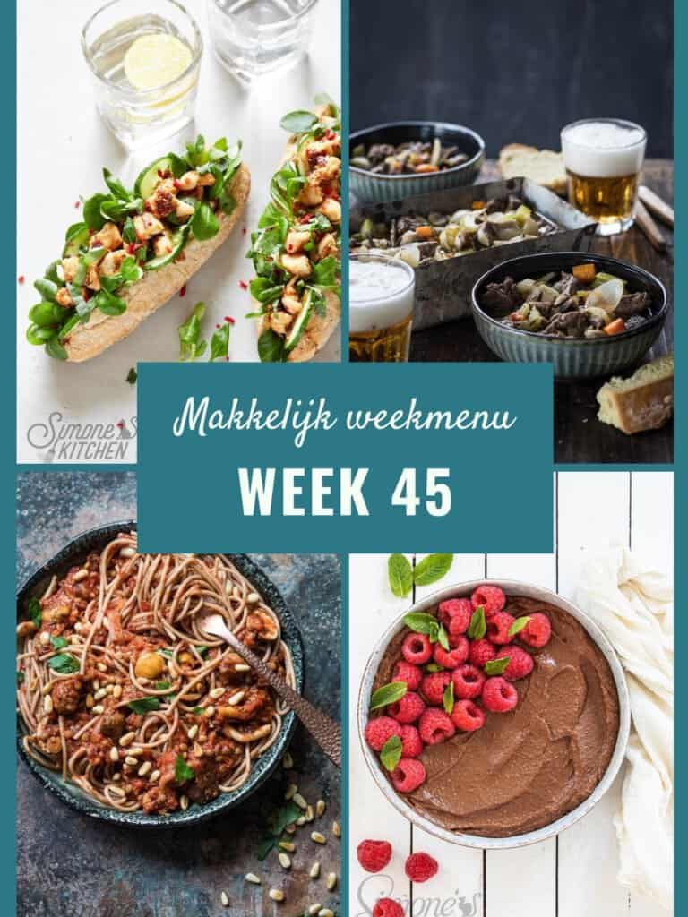 Het nieuwe weekmenu voor week 45 staat weer voor jullie klaar! Met een heerlijke soep uit de oven, een vegan spaghetti ‘bolognese’ en nog veel meer lekkers!