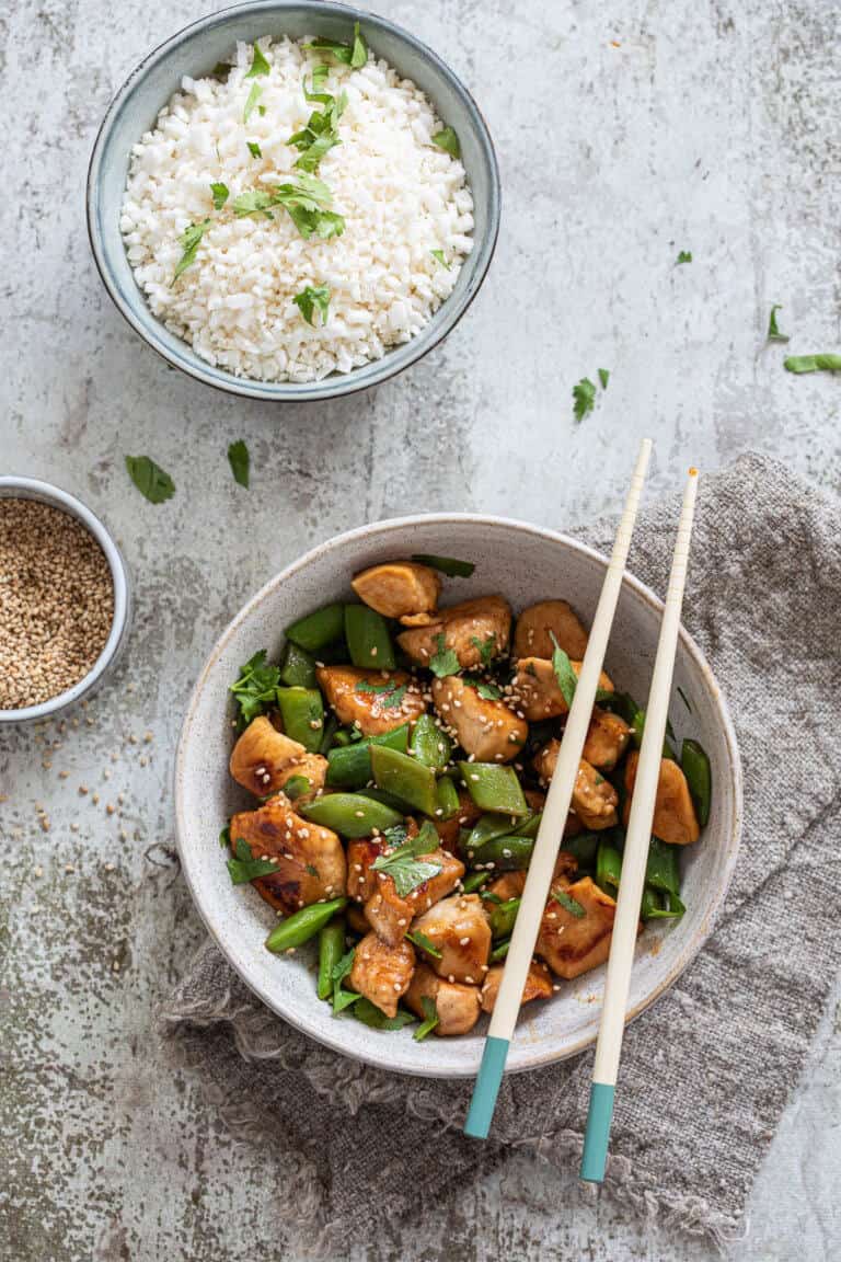 Maar eten moeten we toch zoals ik al zei dus kun je makkelijk deze honing kip met sugarsnaps een keer maken. Bijkomend voordeel dat je de sugarsnaps, de kip en de bloemkoolrijst tegenwoordig uit de vriezer kunt gebruiken! Ik moet mezelf ook wel een beetje dwingen om gezond te blijven eten. Op de een of andere manier ligt junkfood op de loer….