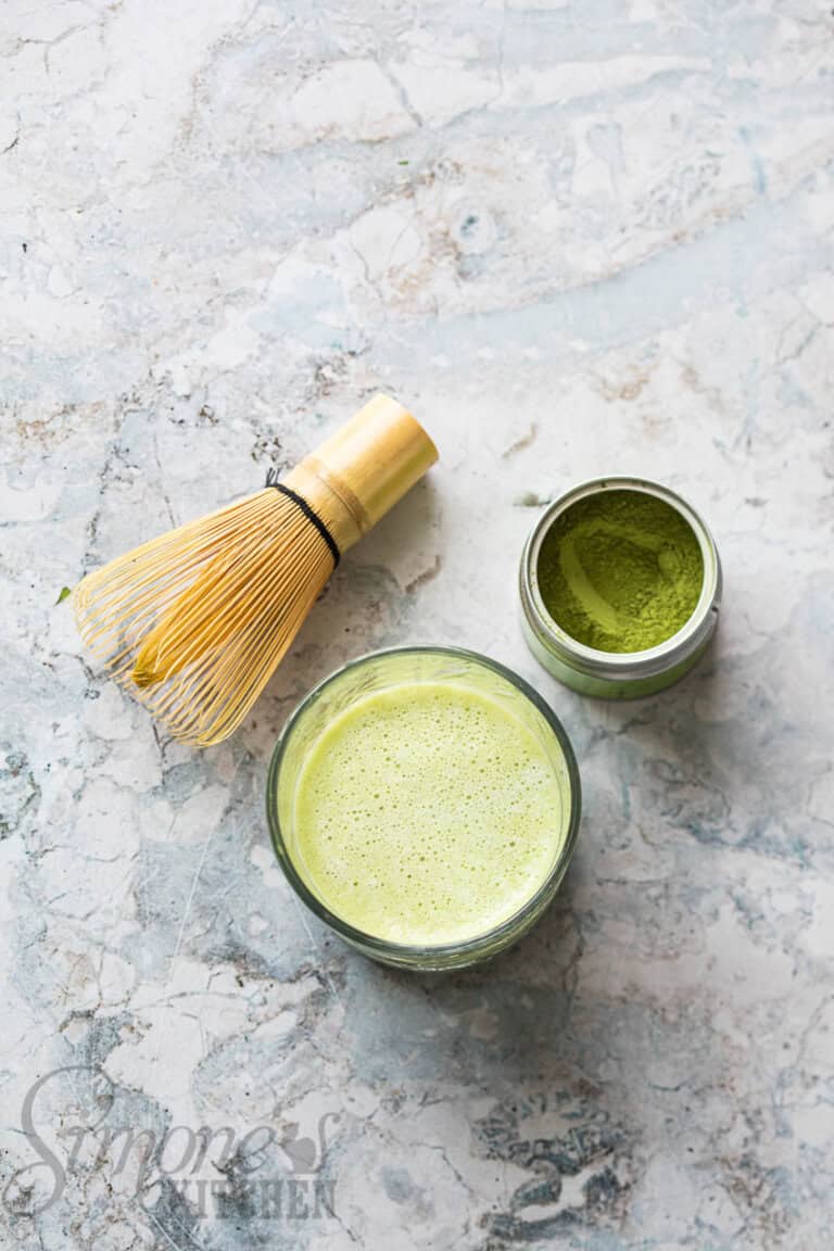 - 1 tl matcha groene theepoeder + heet water om te mengen