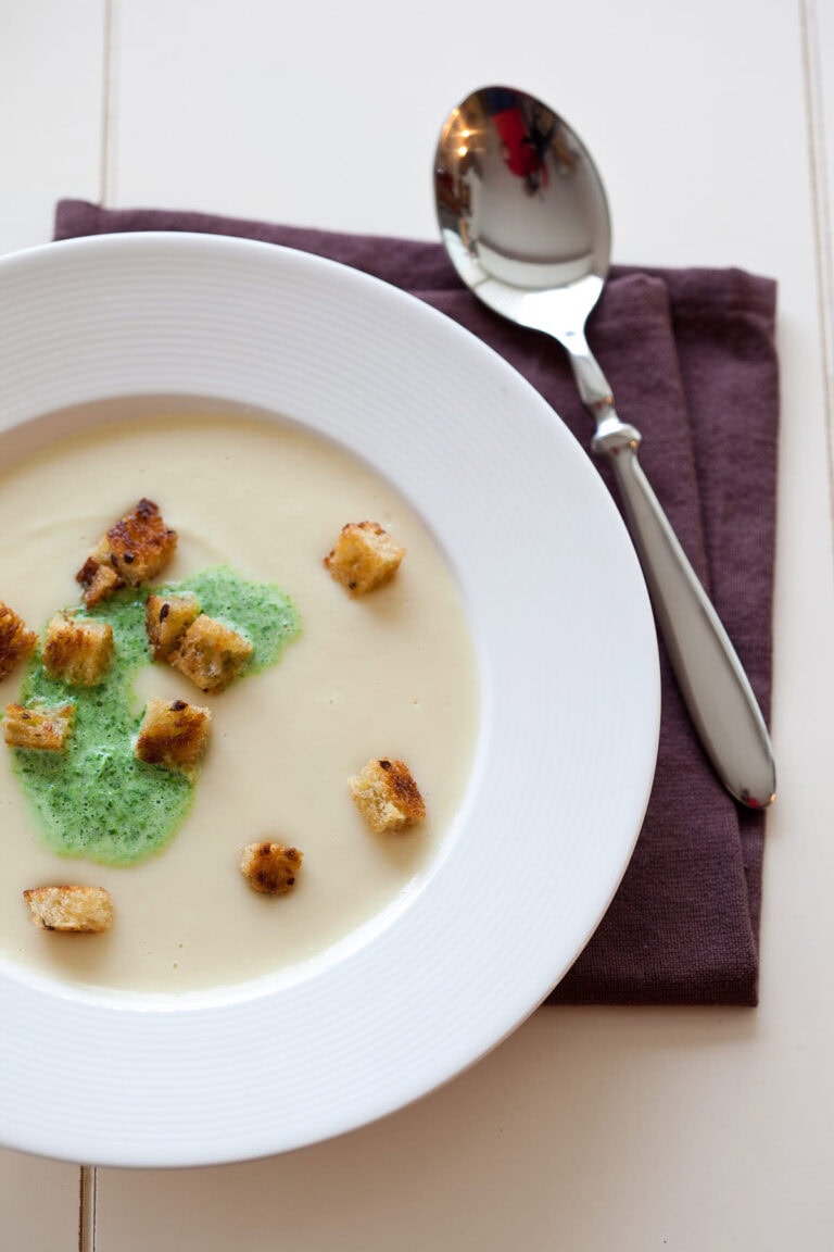 Pastinaak is typisch zo’n groente die vooral veel gebruikt wordt om soep te maken. En met goede reden, want deze heerlijke romige pastinaaksoep met een room van peterselie is makkelijk, ziet er mooi uit en smaakt heerlijk!