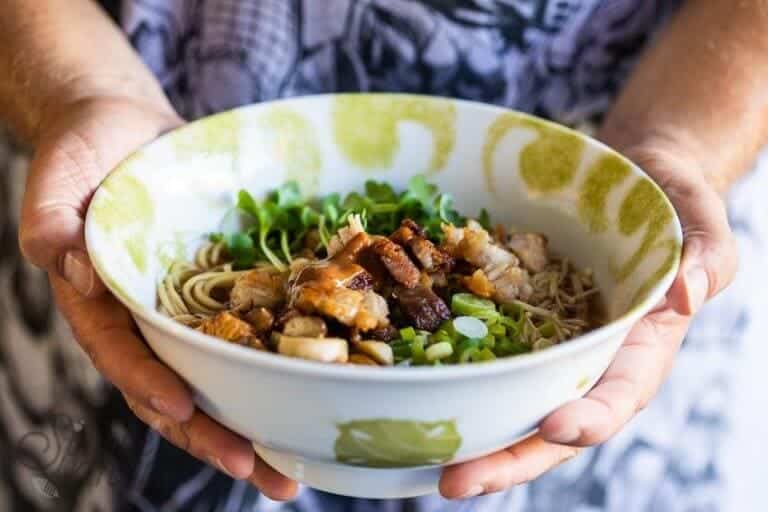 Het is niet de eerste keer dat we een vergelijkbaar gerecht maken met noodles en buikspek. Er is nu eenmaal iets onweerstaanbaar lekkers aan buikspek. Het knapperige, het zachte en nou ja…. dat… Dit gerecht maakten we alweer een tijdje geleden toen de dude en ik samen aan het koken waren. Niet dat de dude erg veel heeft geschreven de laatste tijd. Ik mag wel zeggen dat hij het er een beetje met een jantje van leiden (lijden?) vanaf maakt. Dat moet echt dringend weer eens veranderen.