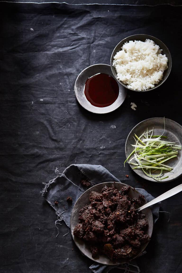 Je kunt de rendang op verschillende manieren eten. Ik heb het redelijk droog laten bakken in de stoofpan maar dat is een optie. Als je het liever wat smeuïger eet dan laat je het eenvoudig minder lang in de pan. Bereid je de rendang in de slowcooker dan is het per definitie al minder droog. Er verdampt veel minder vocht in de slowcooker dus het eindresultaat zal een stuk meer vocht bevatten. Wil je dat niet, dan zul je het na het koken in de slowcooker nog even moeten laten droogkoken in een aparte pan.