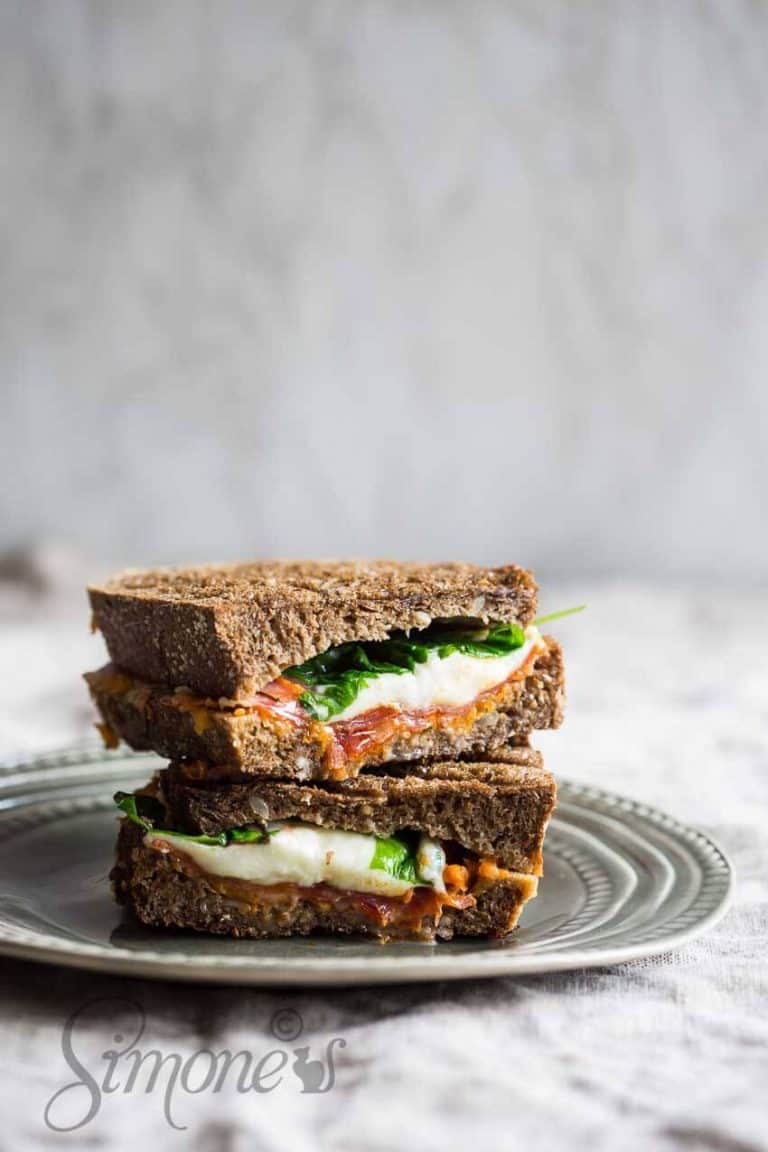 En misschien maar goed ook want ik denk dat de halloumi te zout was geworden en bovendien smelt het niet zo lekker. De mozzarella was dus perfect in deze top sandwich. Qua sla had ik wellicht beter rucola kunnen gebruiken. Dat kan ietsje beter tegen de hitte van een gril maar het bietenblad dat ik gebruikte was al met al ook eigenlijk wel lekker. Het klinkt wellicht een tikkeltje vreemd: een sandwich met pompoen, maar geloof me als ik zeg dat het absoluut de moeite waard is.