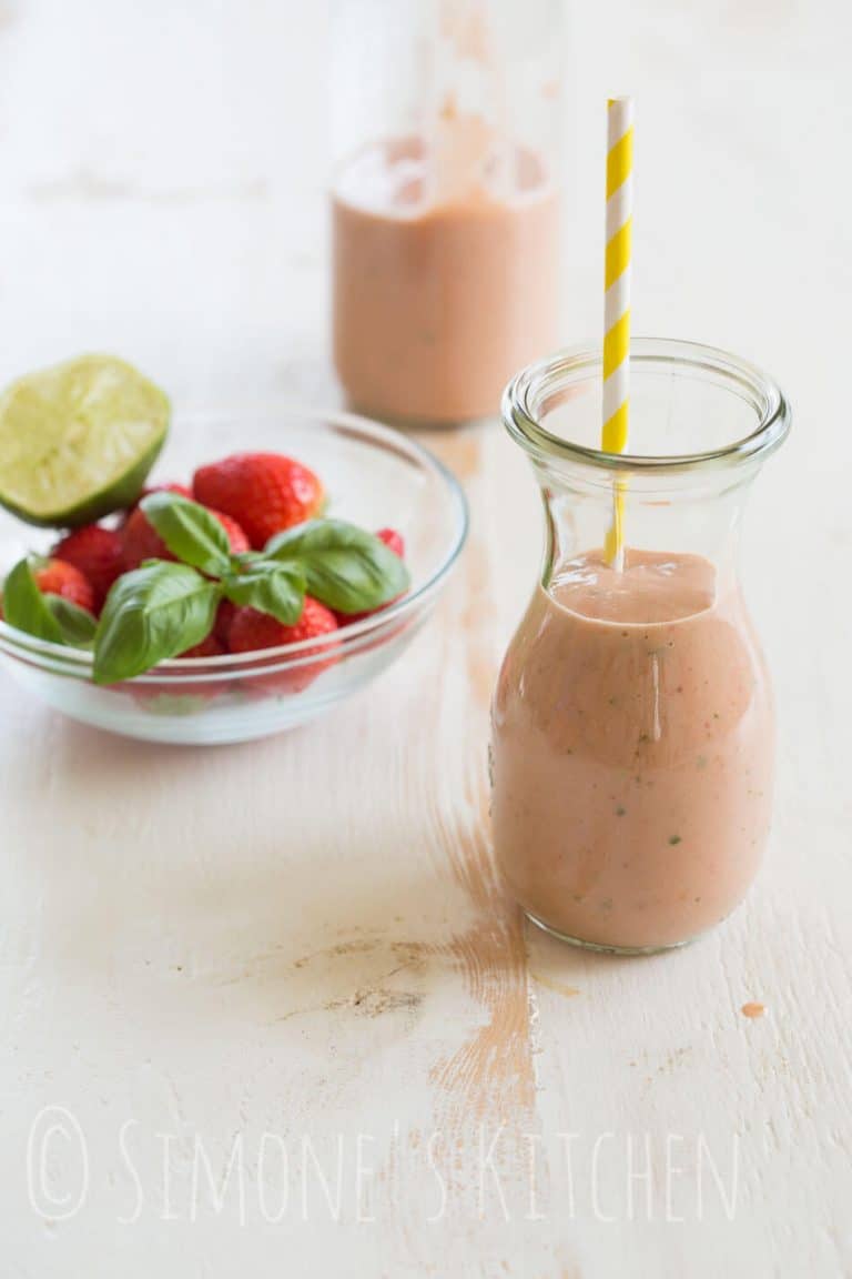 Een lekker snelle en zomerse smoothie met havermelk, aardbeien, avocado en nectarine. Uiteraard kun je het makkelijk aanpassen naar ander fruit van het seizoen.
