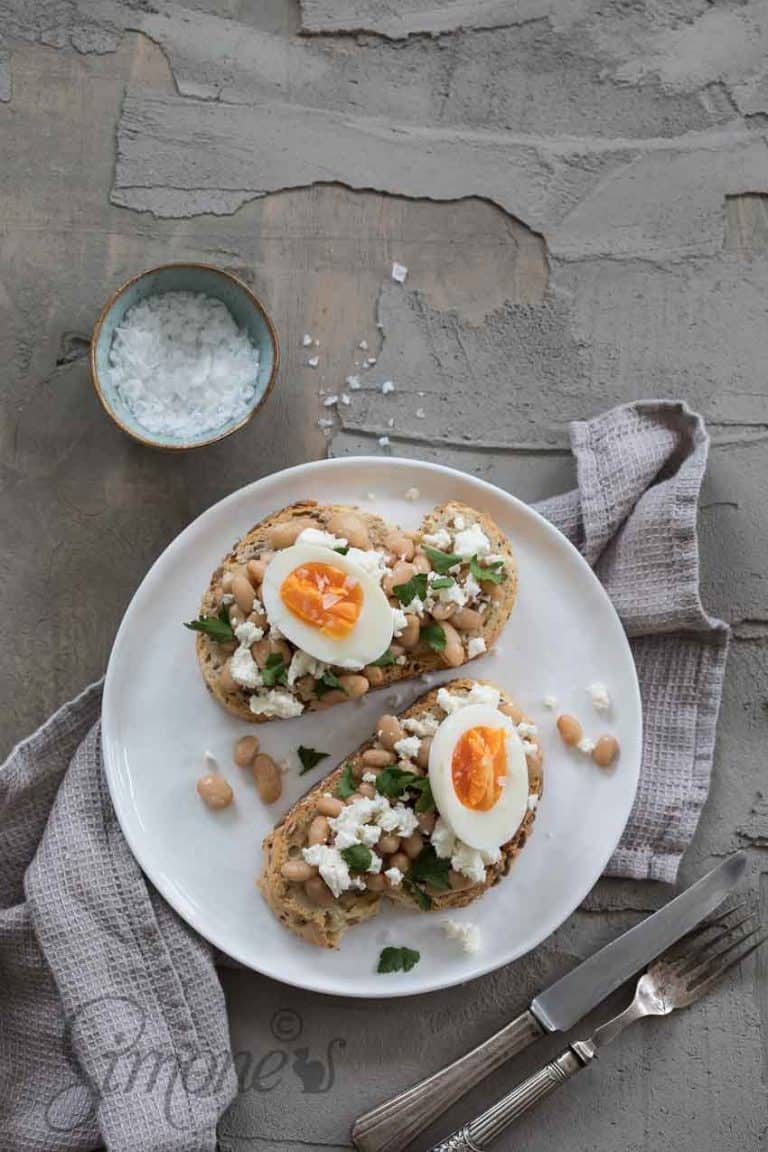 Want jullie kwamen natuurlijk niet voor mijn gezeur maar voor een lekker recept. Nou vooruit dan maar weer. Deze is eenvoudig maar lekker voor een snelle lunch. Een lekker geroosterd broodje met bonen, avocado, feta en een zacht gekookt eitje. O en ja ik zie ook wel dat het eitje op de toast niet zacht genoeg is. Maar eh… ik was drie dingen tegelijk aan het maken en even niet opgelet op de kooktijd van de eieren.. Oops. Een zachtgekookt eitje maakt het wel echt lekkerder hoor. Het heeft dat nodig. Dus zorg dat jouw eitje wat minder hard gekookt is… 🙂