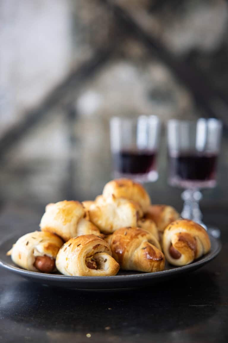 Foto hierboven is genomen met een diafragma van f2.8. Je ziet dat de achtergrond wazig is en zelfs de worstenbroodjes zijn niet allemaal even scherp.