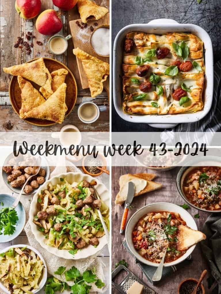 Een tikkie later dan gebruikelijk, maar hier is alsnog het weekmenu voor week 43! Met weer lekker veel herfstig eten. Van een makkelijke rucolasalade met geroosterde pompoen tot appelflappen uit de airfryer. Eet smakelijk!