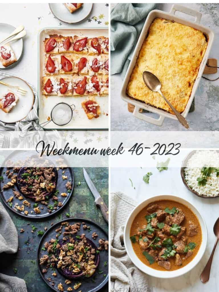 Als ik dit schrijf komt er weer een storm op Nederland af. Ciaran schijnt morgen vreselijk te gaan huishouden en dan vooral langs de kust. Ben ik de enige die dan denkt, eerst zien dan geloven? Want al die onnodige codes rood, oranje en geel liepen voornamelijk met een sisser af. Het weer is dan wel weer de graadmeter voor lekker comfortfood, en dat heb ik bij elkaar gezocht in dit november weekmenu.