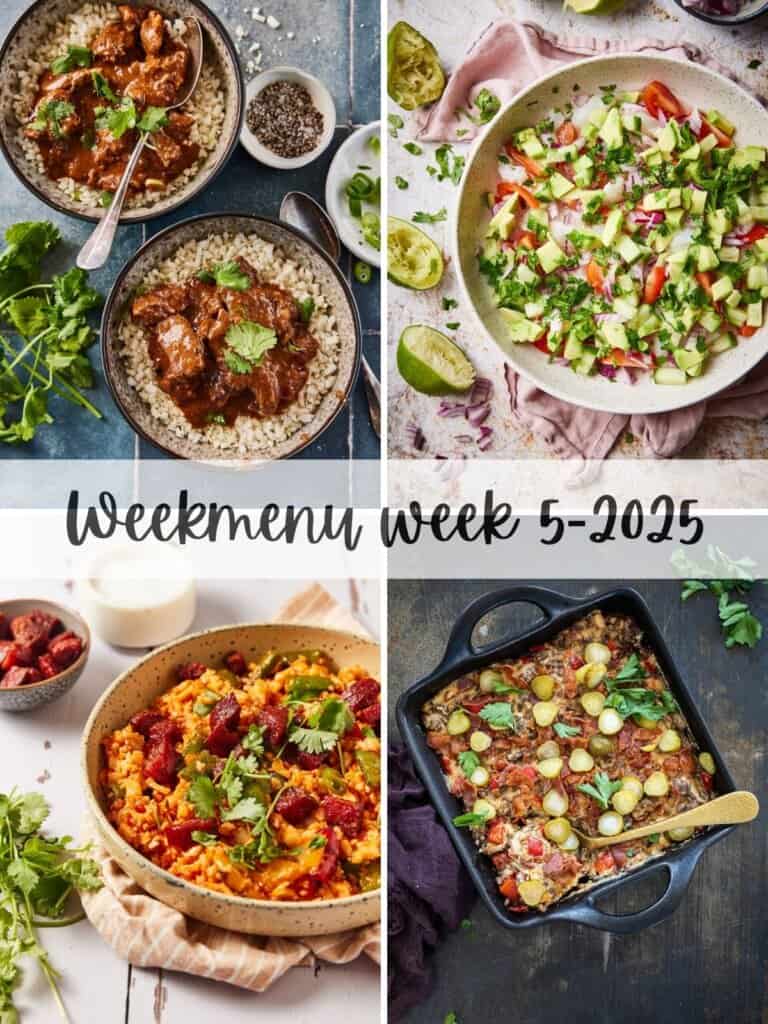 Deze week mixen we in het weekmenu lekker makkelijk met gewoon superlekker. Of je nou zin hebt in iets fris, iets pittigs of gewoon in comfort food, dit weekmenu heeft voor iedereen wat. Een knapperige salade, een pittige curry, een cheesy ovenschotel – klinkt goed, toch? Het leuke is dat alle gerechten snel en simpel te maken zijn, maar toch net even anders dan je gewend bent. Perfect voor drukke dagen waarop je geen uren in de keuken wilt staan, maar wel iets lekkers op tafel wilt zetten. Op zaterdag geef ik je een recept voor muffins. Maak er meteen wat meer en vries ze in, dan heb je voor de komende weken meteen een makkelijke lunch/tussendoortje in huis.