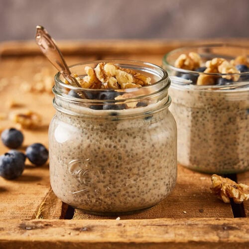 Chiapudding is zo’n ontbijt dat je leven stiekem net iets makkelijker maakt (of in ieder geval sneller op de vroege ochtend). Deze versie met blauwe bessen en walnoten is romig, lichtzoet en ideaal om ’s avonds al klaar te zetten.
