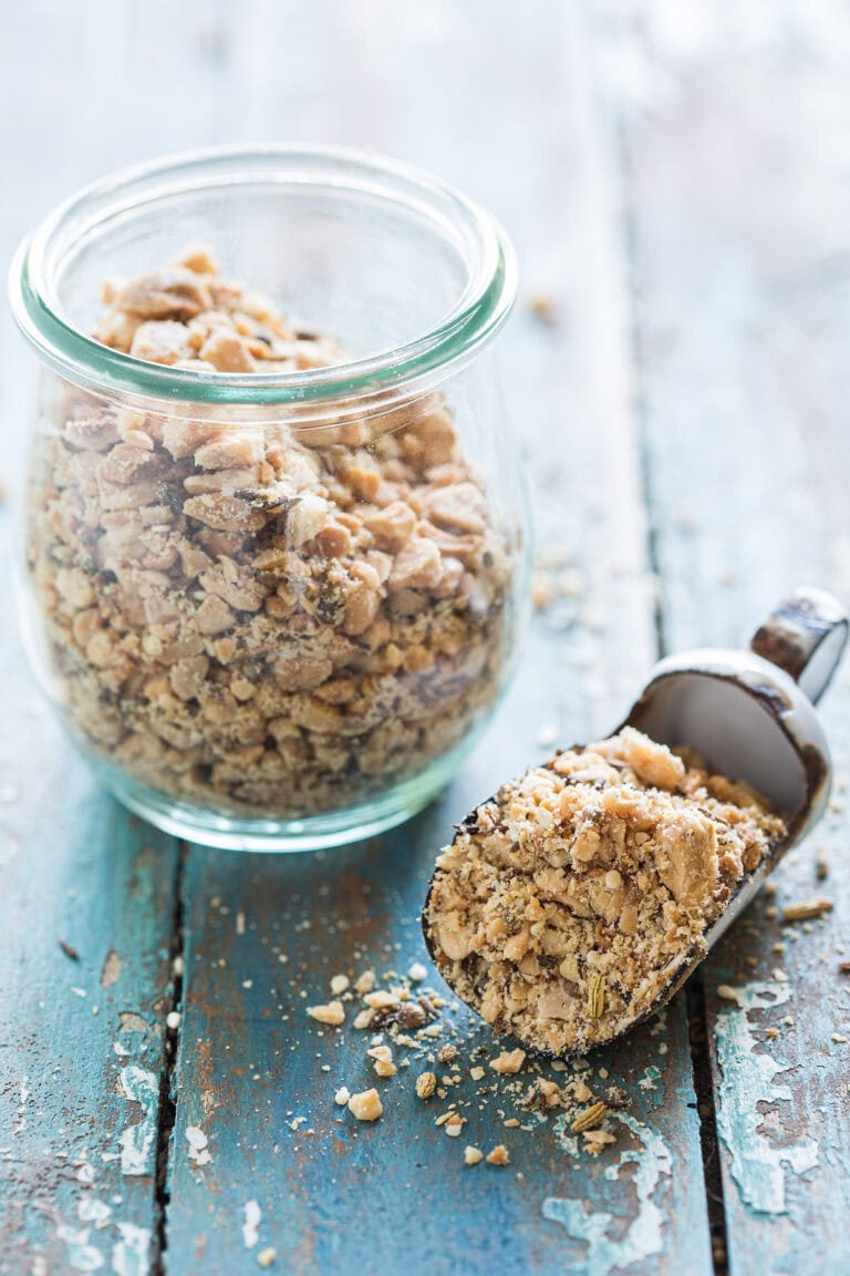 - Bewaar dukkah in een luchtdicht afgesloten pot voor 1-3 maanden buiten de koelkast op een donkere en koele plek.
